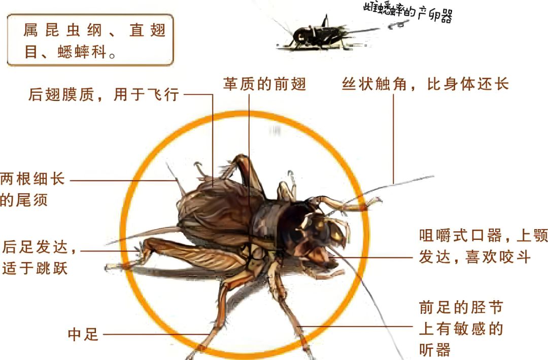 通常用“两尾”“三尾”描述蟋蟀尾须数量:两尾的多为雄虫,三尾的多为雌虫,雌虫中间的“尾巴”实为产卵管。南京最常见的本土蟋蟀是中华斗蟋,体型相对较小;此外还有油葫芦,但数量远少于中华斗蟋。
