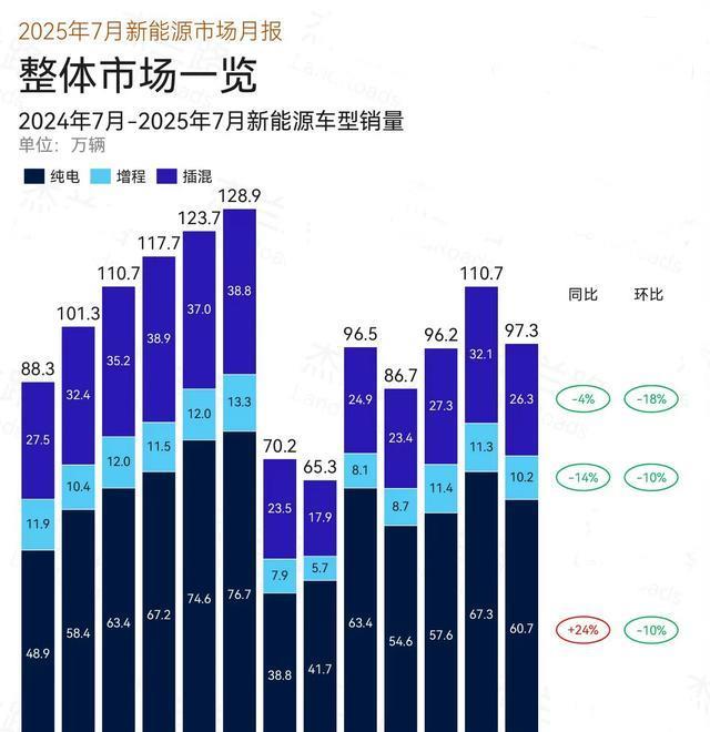 还记得前两年增程车火得跟火锅店一样吗?满大街都是“可油可电”的广告鼎茂策略,理想、问界这些品牌靠这招赚得盆满钵满。结果今年7月乘联会数据一出来,增程车销量直接跌了11%,纯电车却逆势涨了24.5%——这哪是降温啊,简直是被泼了一盆冰水!这到底咋回事?咱们今天好好唠唠。